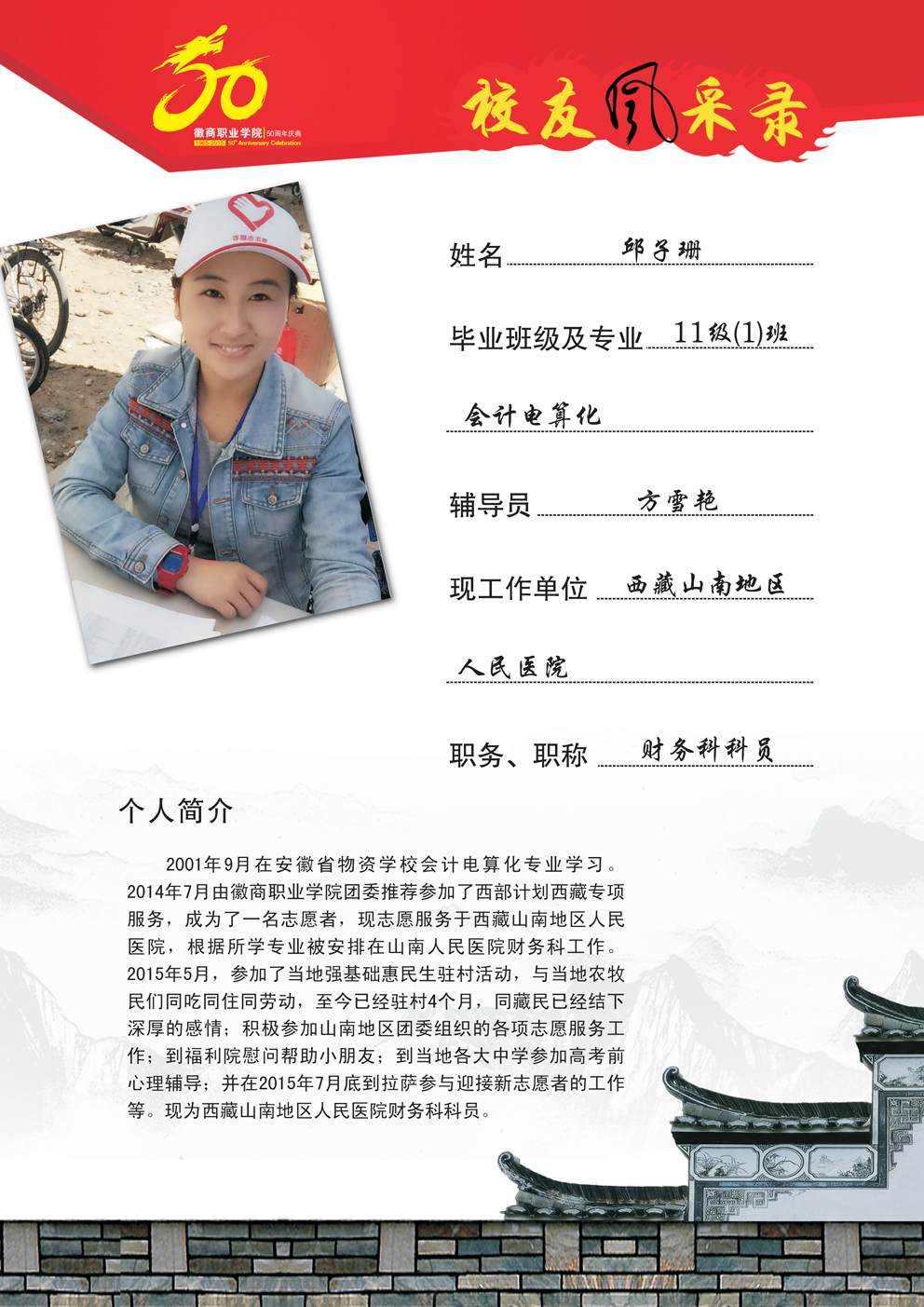 校友风采—11级(1)班会计电算化 邱子珊
