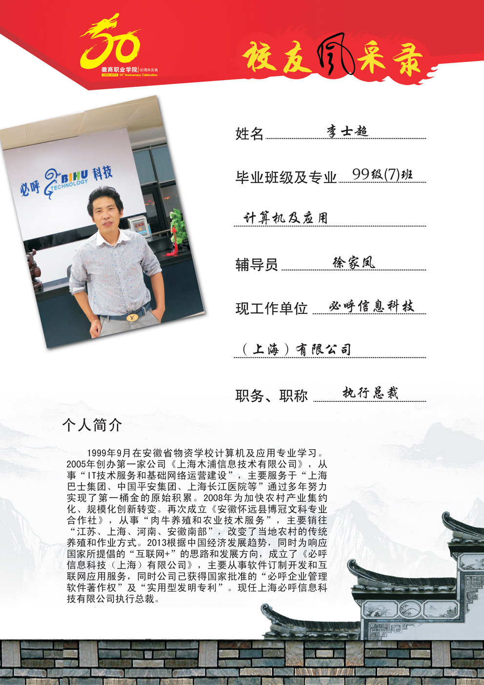 校友风采—99级(7)班计算机及应用 李士超