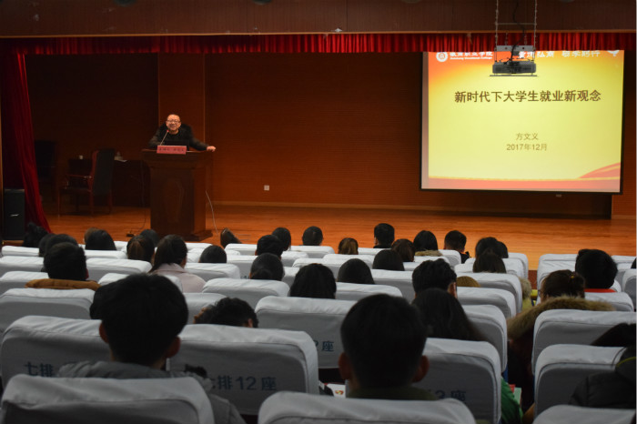 方博士作了题为《新时代下大学生就业新观念》的报告。他首先向同学们讲述了自身的职业经历,向同学们展示了大学生就业中的几个关键要素;从当前社会就业形势与政策出发,结合大学生在校学习的实际状况,指出大学生就业的薄弱点,鼓励大学生综合分析社会大环境,建立自信,学会坚持,百折不挠,勤奋好学,选择适合自己的就业方向,专注追求人生理想;最后,方博士建议同学们理性看待就业的过程,先就业,再择业,有机会再创业;树立远大目标,分为若干阶段,一步一个脚印,最终实现满意就业。 讲座结尾,方博士与同学们进行了互动交流,同学们积极提问,方博士热心解答,讲座现场气氛热烈。